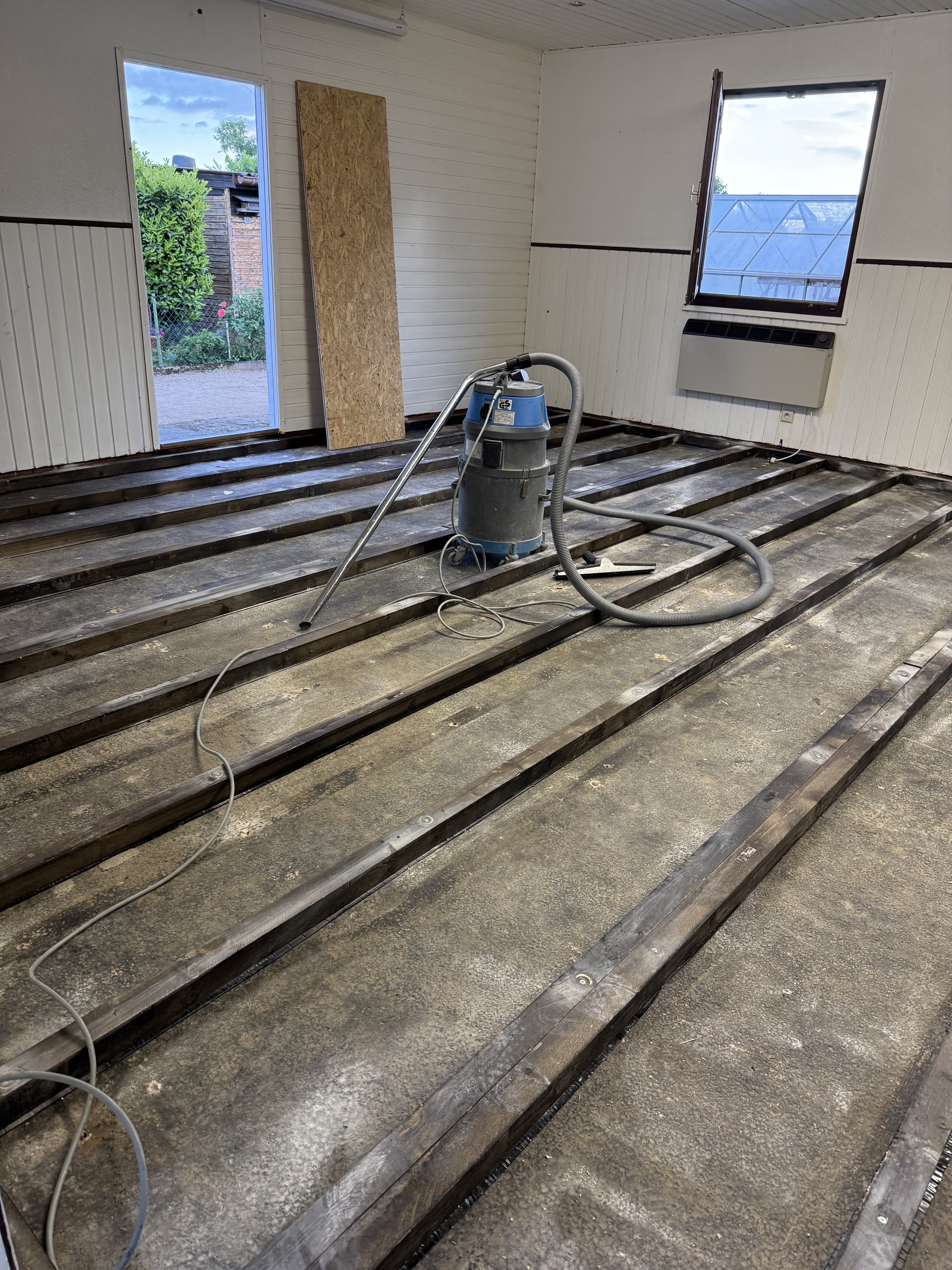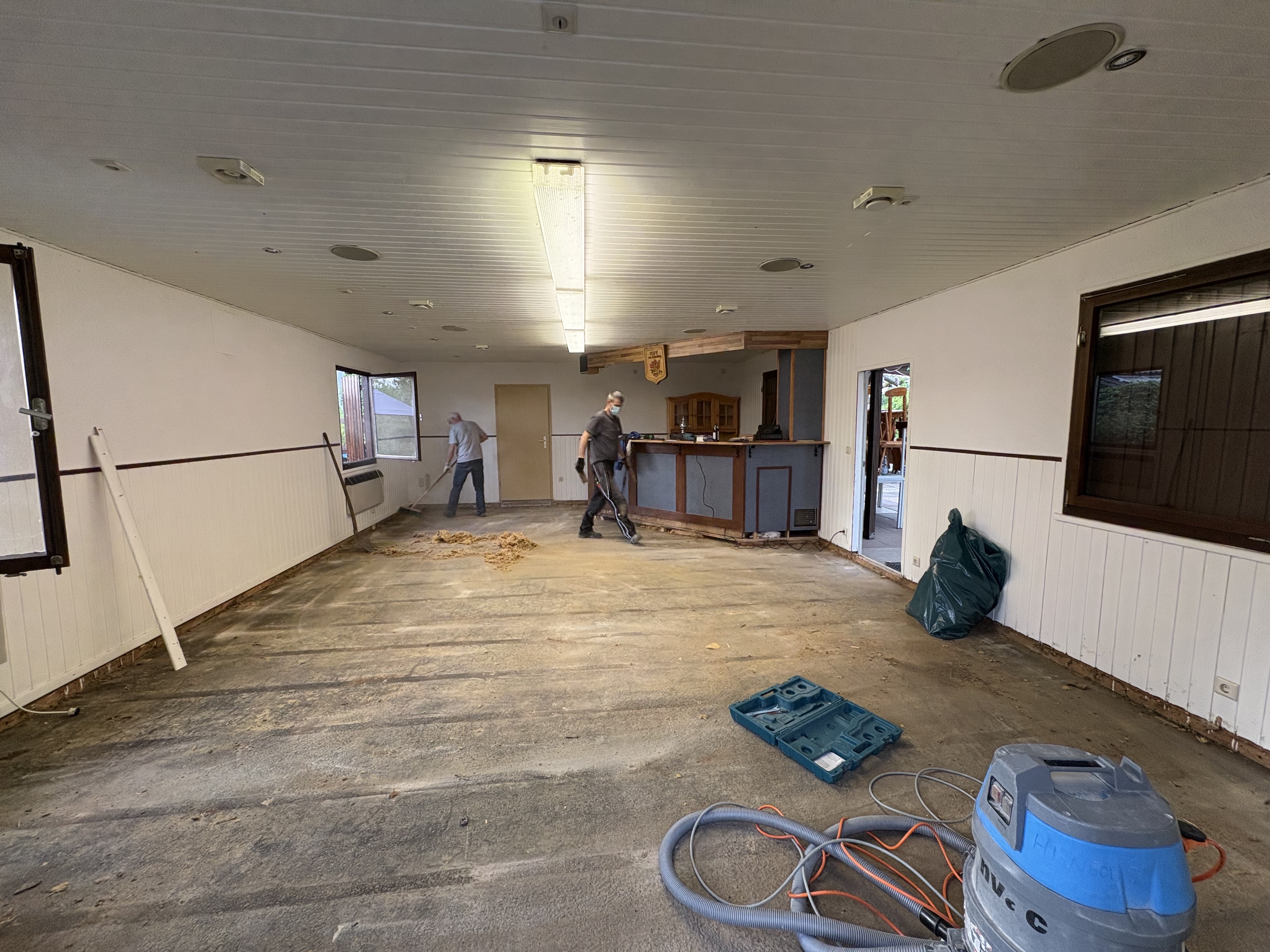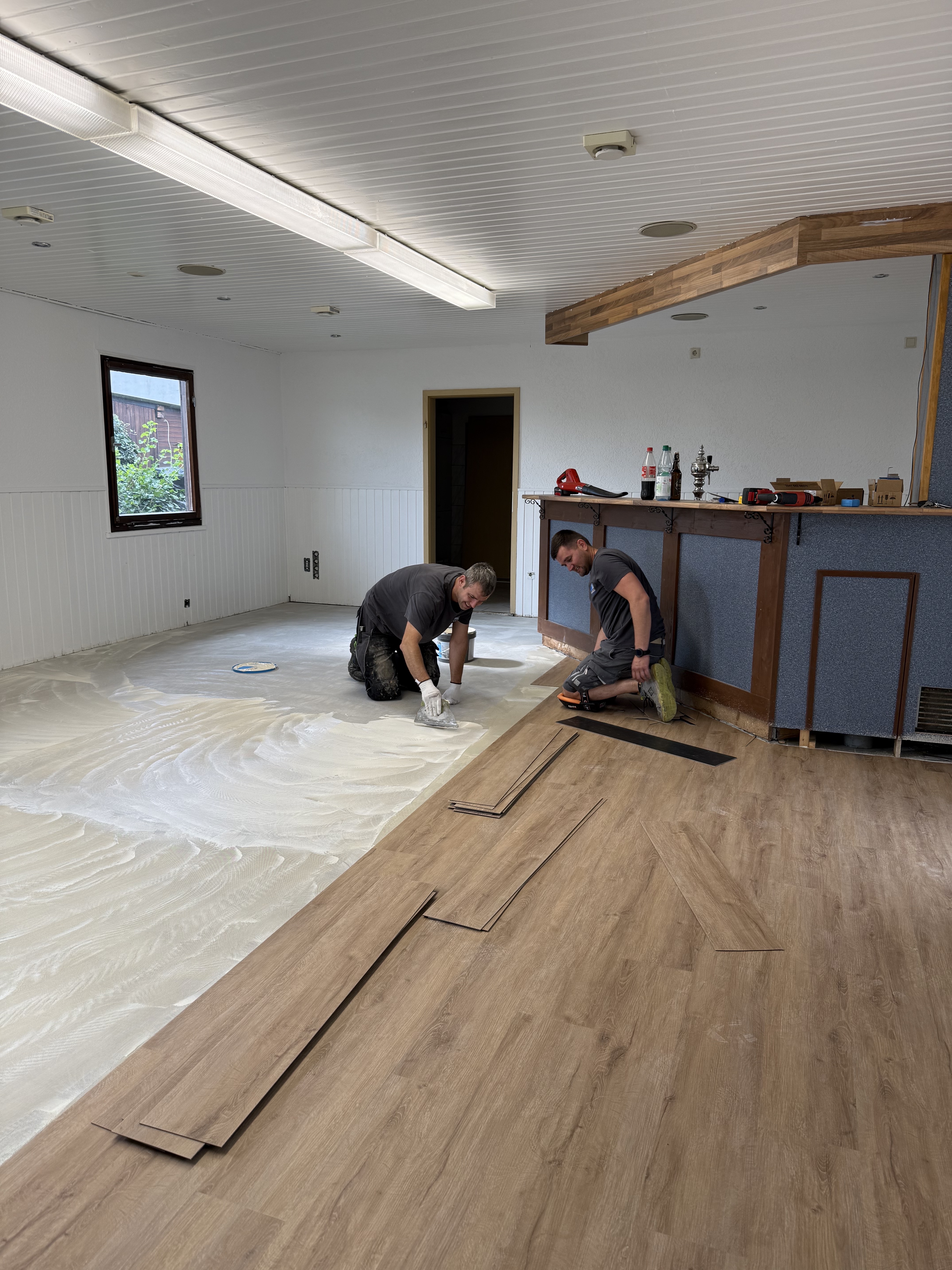 Im Frühjahr dieses Jahres wurde unser Vereinsheim renoviert: Der alte Fußboden wich einem neuen, modernen Belag. Dafür musste der alte Fußboden zunächst vollständig entfernt werden – eine Aufgabe, die unsere engagierten Mitglieder mit großem Einsatz in die Hand nahmen.